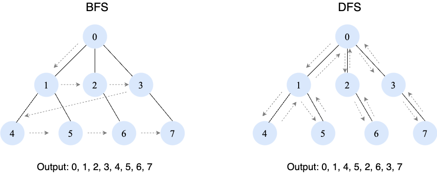 - How do BFS and DFS differ in their exploration patterns and use cases?