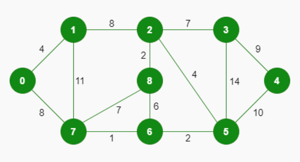let edges: Vec<Edge> = vec![(7,6,1),(8,2,2),(6,5,2),(0,1,4),(2,5,4),(8,6,6),(2,3,7),(7,8,7),(0,7,8),(1,2,8),(3,4,9),(5,4,10),(1,7,11),(3,5,14)];